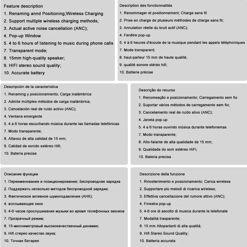 Features 6: air pro tws earphone